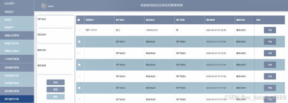 (7)预约服务管理:管理员点击可通过搜索用户姓名、预约时间、服名称和服务类型进行查看预约服务列表。