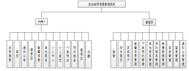 洗浴会所信息管理系统的设计在功能上划分为普通用户和管理员两种角色。