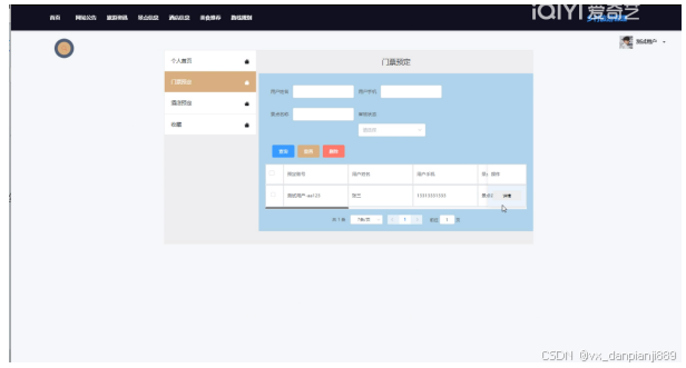门票预定管理页面设计效果如下图所示。