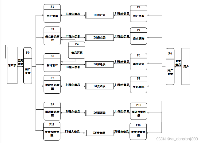 对系统的数据流进行分析,系统的使用者分为二类,一般用户,管理员。系统主要对界面信息传送,登录信息的验证,注册信息的接收,用户各种操作的响应做处理。