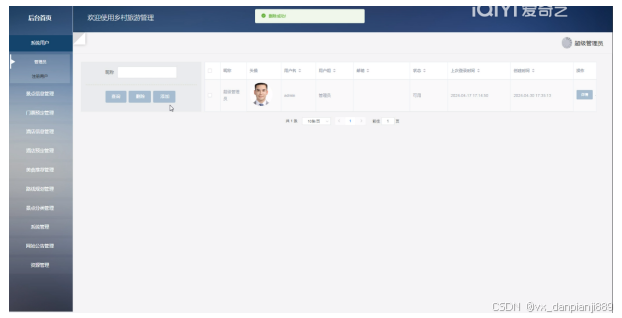 我们相信,在不久的将来,基于Spring Boot的乡村旅游管理系统将成为推动乡村旅游产业发展的重要力量,为游客提供更加优质、便捷的旅游体验,为乡村经济的繁荣和可持续发展做出更大的贡献。