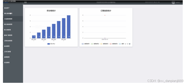 管理员可以在后台首页可以查看积分榜统计和订票信息统计表。管理员功能界面如下图所示。