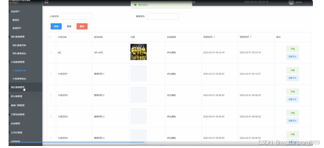 - 小组赛事管理:专门用于管理小组阶段的赛事,包括小组分组、比赛安排、结果录入等。