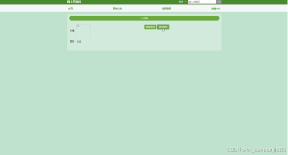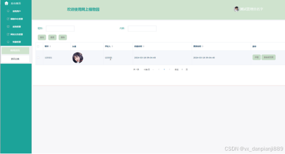 This forum website has two roles: administrator and registered user. The administrator functions include background home page, system users, system management (rotation map management), green plant center management (green plant center list, green plant center addition), website announcement management, resource management (news and information, information classification), etc. User functions include personal center, home page, website announcement, news and information, green plant center and so on. Therefore, it has a certain practicality.