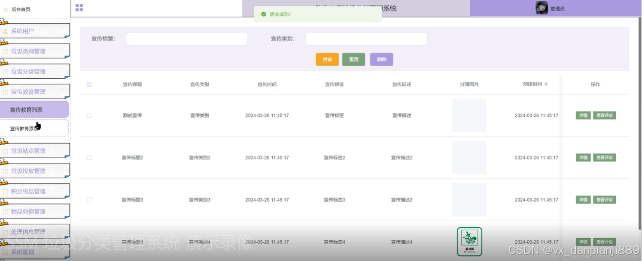 - 宣传教育管理:管理员可以管理宣传教育内容,包括发布、编辑、删除教育信息。