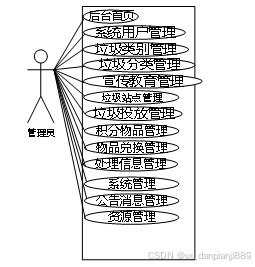 垃圾分类管理系统中管理员角色用例图如图2.2所示: