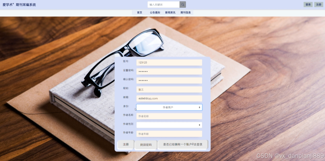 | 预期结果 | 提交以后,页面首页会显示新的期刊信息信息 |