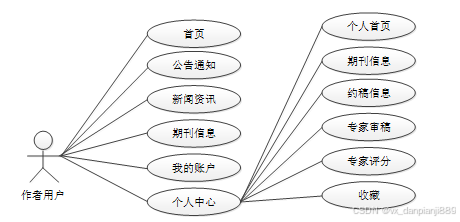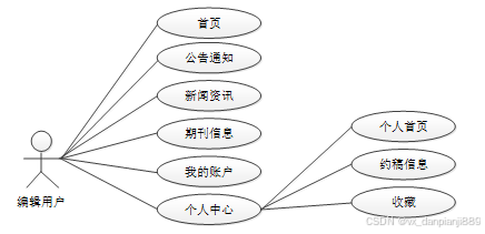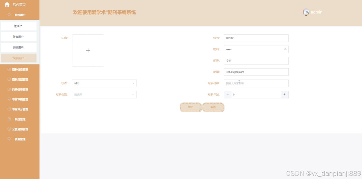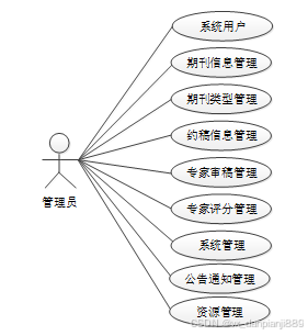 (2)系统用户:管理员可以对系统中所有的用户角色进行管控,包含了管理员、作者用户、编辑用户以及专家用户这四种角色。