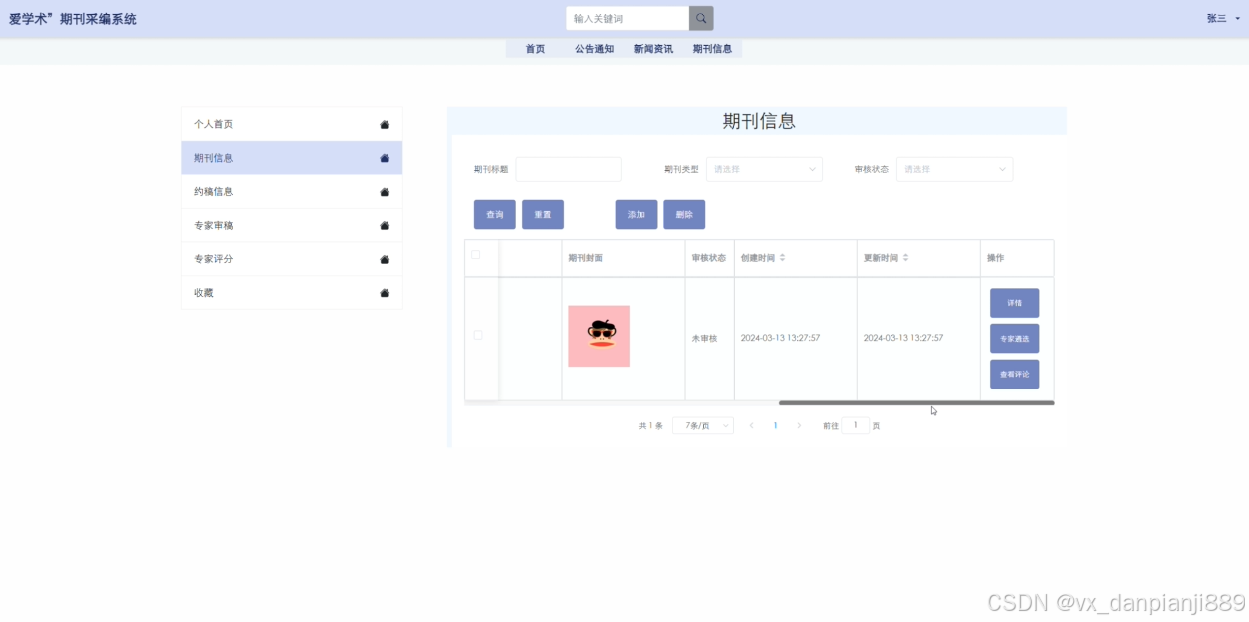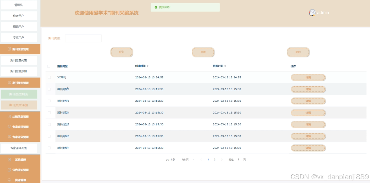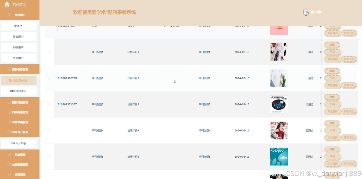 期刊信息管理页面如下图所示。