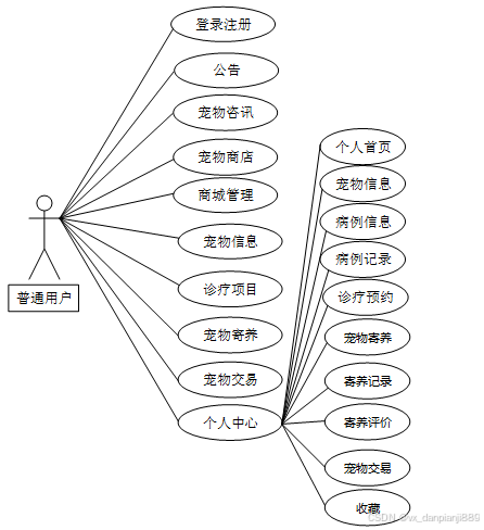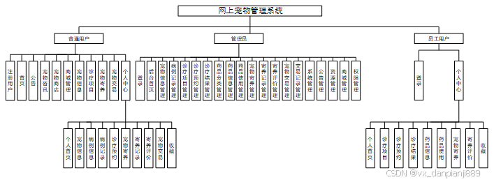经过系统需求分析,该网上宠物管理系统的设计与实现功能结构图如图4-1所示: