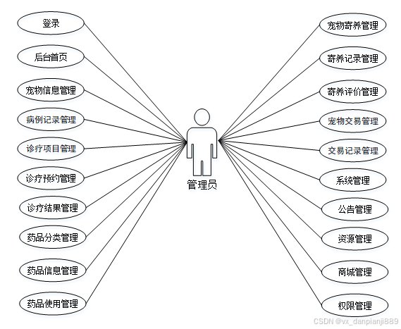 本文首先进行了系统需求分析,明确了系统的功能和特点。然后,详细介绍了系统的架构设计,包括前端界面设计、后端数据库设计以及数据交互流程。接着,介绍了系统的主要模块设计和实现过程,包括宠物信息管理模块、病例记录管理模块、诊疗项目管理、药品信息管理、宠物寄养管理、宠物交易管理、商城管理等。