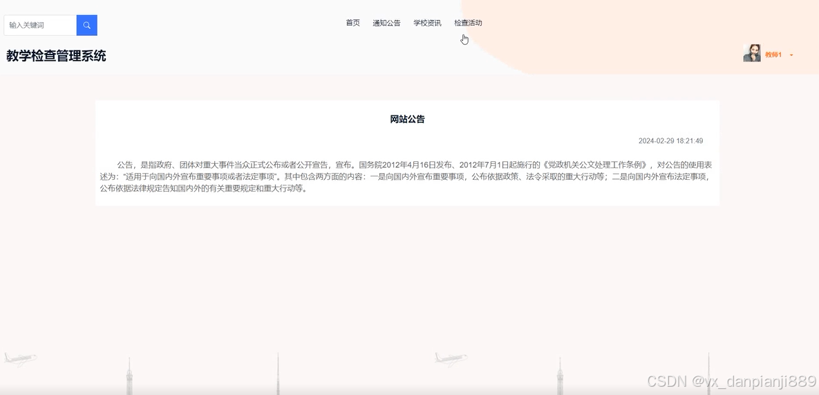 关键词:Spring Boot;教学检查管理系统;系统开发