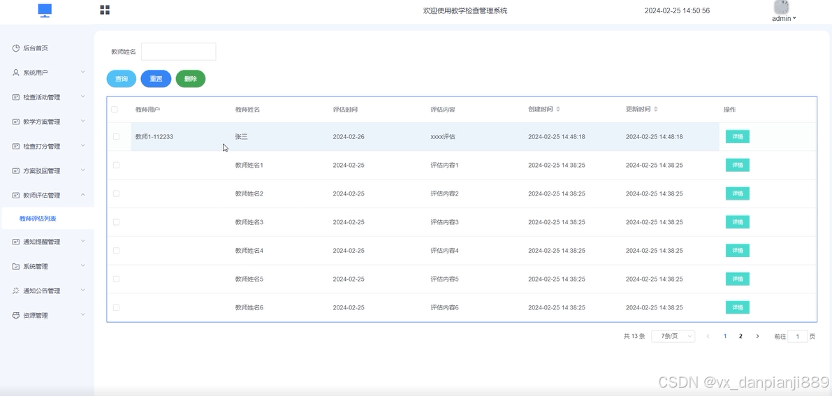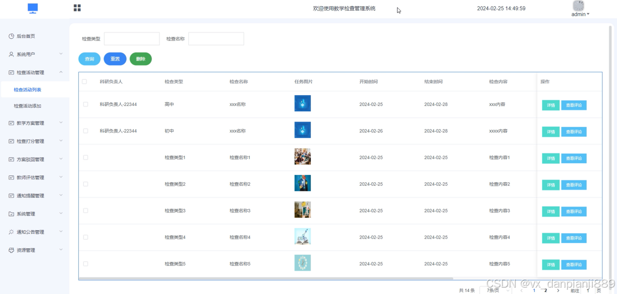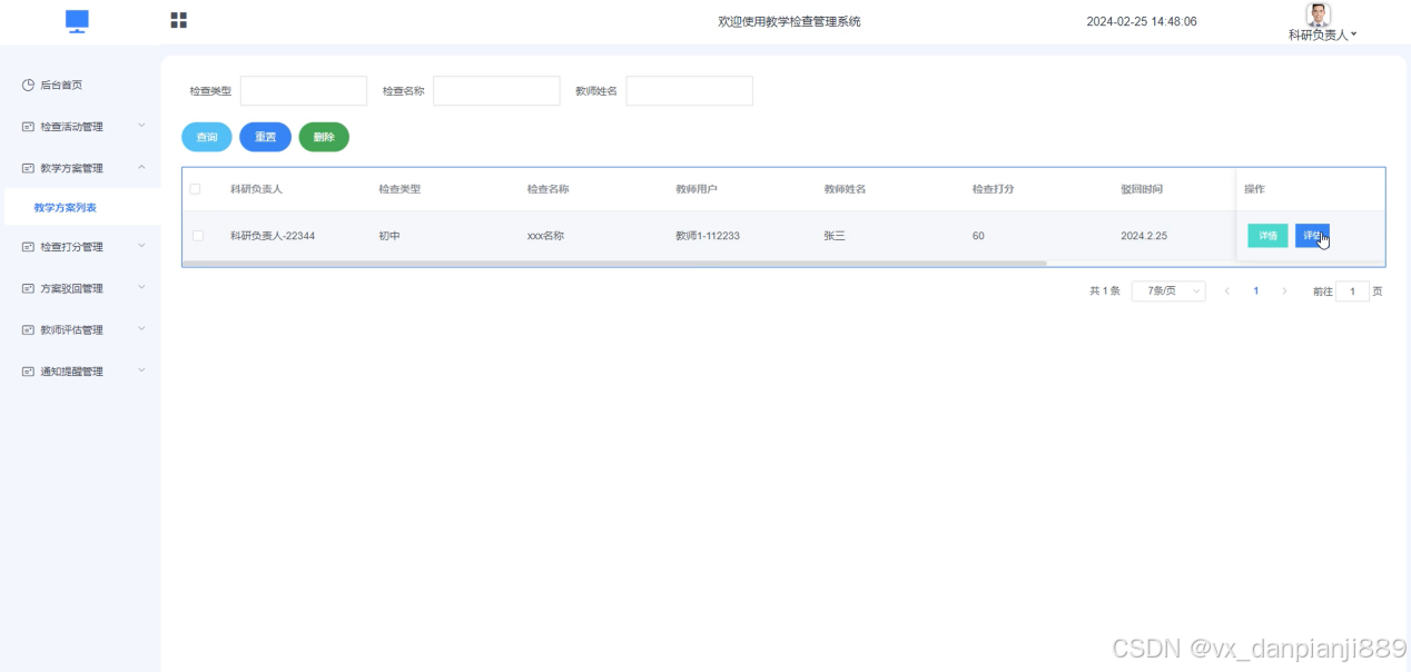 系统设置与配置模块:检查活动管理、教学方案管理、检查打分管理、教师评估管理、通知提醒等多个功能模块组成,每个模块都有其独特的需求。科研负责人可以对系统进行添加、删除、编辑、查询等,