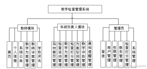 以上是基于Spring Boot的教学检查管理系统的主要功能模块设计。具体实现时,还需进一步详细定义每个模块的具体功能和交互流程,确保系统能够满足教学检查管理的需求。