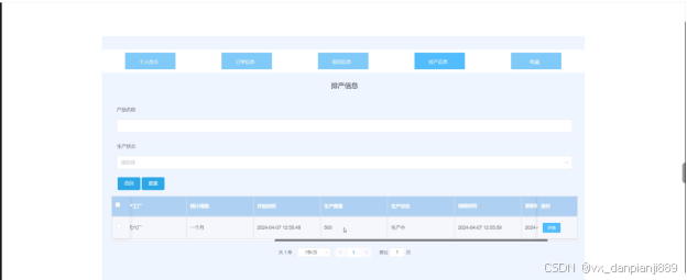 - 订单信息管理:用户可以查看订单信息列表中某个用户的订单信息详情并提交订单押金和订单状态信息;已支付的订单可以提交推产信息。