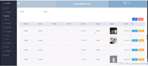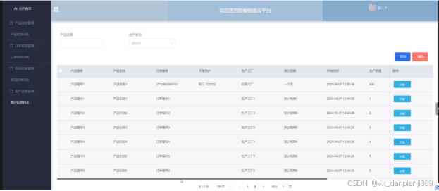 - 排产信息管理:管理员可以查看排产信息列表中某个用户订单的排产信息详情;可以查询和删除排产信息。
