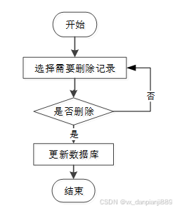 用户可选择要删除的信息并进行信息删除操作,在删除信息时系统提示是否确定删除信息,是则删除信息成功,系统数据库将信息进行删除。删除信息流程图如图2-2所示。