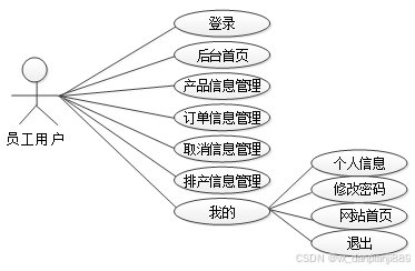 - 登录:员工用户账号由管理员添加,用户可以用管理员提供的账号密码登录系统。