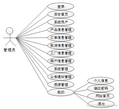 通过2.3的角色分析,得出了本智能制造云平台的用例图: