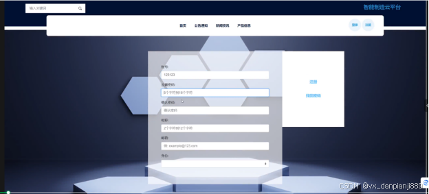 - 首页:用户可以查看首页展示的轮播图、新闻资讯和产品信息推荐等信息。