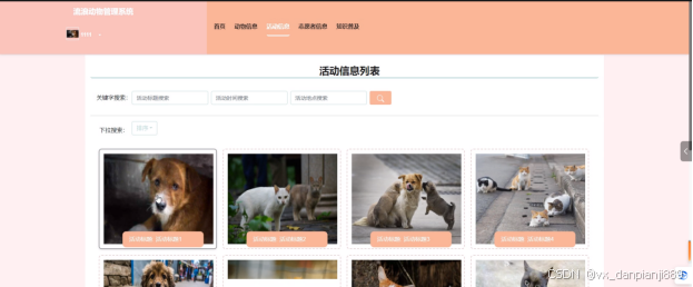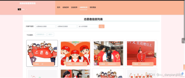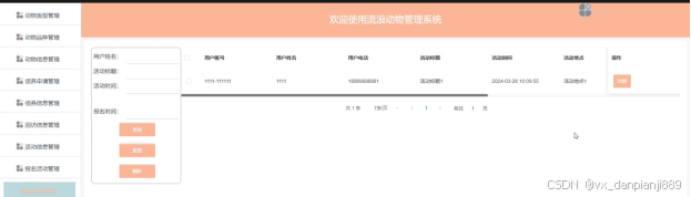 本系统采用Spring Boot框架进行开发,Spring Boot是一个基于Java语言的开源框架,它具有简单易用、高效快捷、跨平台,易于维护等优点,被广泛应用于企业级应用的开发。它提供了一系列内置的功能和工具,能够大大简化Web应用的开发过程。本系统主要包括普通用户、志愿者用户和管理员这三大功能模块,实现了动物信息管理、活动信息管理、志愿者信息管理、领养信息管理、用户管理等核心功能。研究此系统旨在提高流浪动物管理和促进领养工作,改善社会对待流浪动物的态度,有助于提高流浪动物的生存力。