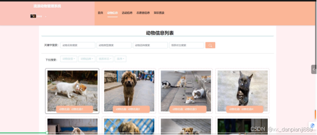 随着社会的发展和城市化进程的加速,流浪动物问题逐渐成为社会关注的热点。流浪动物管理不仅关系到动物福利,也体现了社会的文明程度。然而,现有的流浪动管理方式往往面临诸多挑战,如信息不对称、资源分配不均、管理效率低下等。为此,本文提出了一种基于SpringBoot的流浪动物管理系统。
