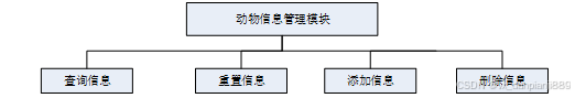 动物信息管理模块是本系统中的重要功能之一。该模块的设计旨在提供对流浪动物信息的发布、编辑、删除和查看等管理功能,以便及时、准确地向系统用户发布相关的流浪动物信息。其模块功能结构图如下3-4所示: