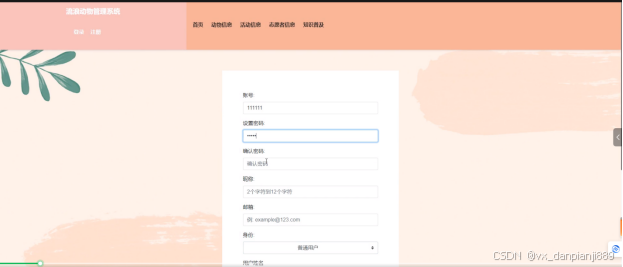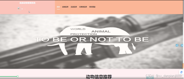 - 首页:用户可以查看首页展示的轮播图、动物信息推荐等信息。