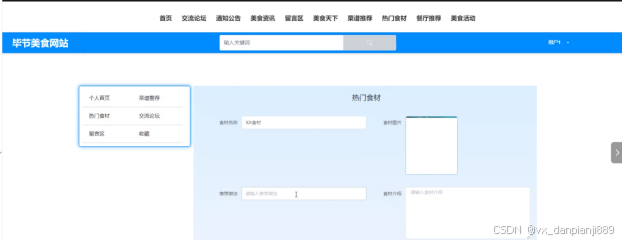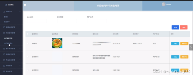 4)热门食材管理:管理员可以添加热门食材信息,可以对热门食材列表信息进行查询和删除操作。