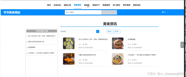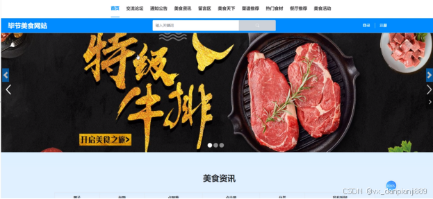 2) 首页:用户可以查看首页展示的轮播图、美食资讯、菜谱推荐等信息。