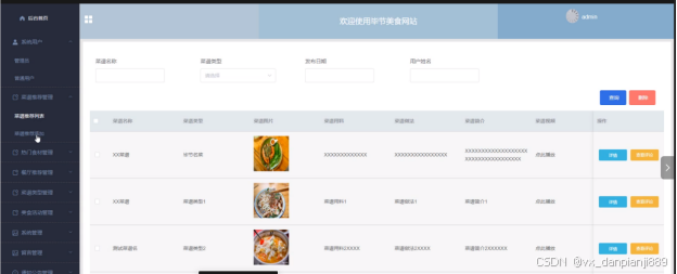 3)菜谱推荐管理:管理员可以添加菜谱推荐信息,可以对菜谱推荐列表信息进行查询和删除操作。