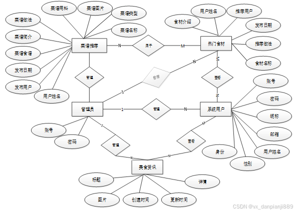 下面是整个毕节美食网站中主要的数据库表总E-R实体关系图。