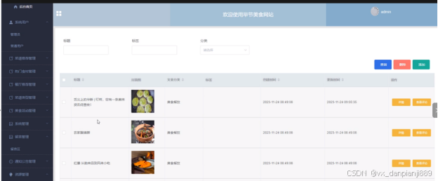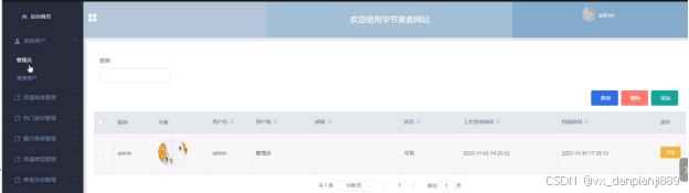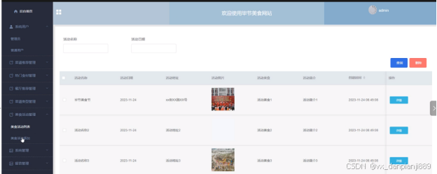 7)美食活动管理:管理员可以添加美食活动信息,可以对美食活动列表信息进行查询和删除操作。