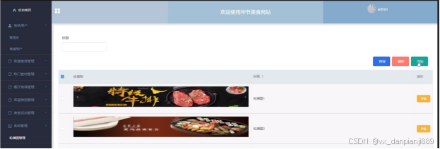 8)系统管理:管理员可以对轮播图列表进行查询、添加和删除操作。