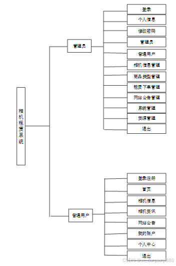 按照相机租赁系统的角色,我划分为了普通用户管理模块和管理员管理模块这两大部分。