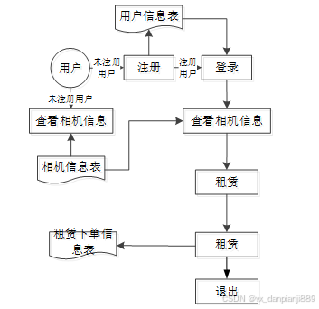 相机租赁系统最重要的一个功能就是租赁,其模块功能结构,具体的结构图如下: