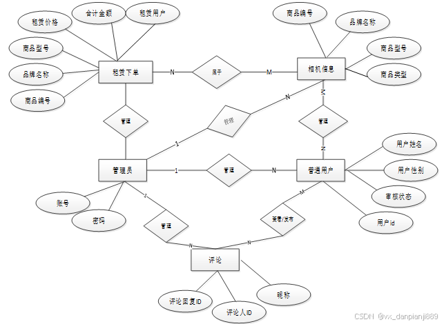 下面是整个相机租赁系统中主要的数据库表总E-R实体关系图。