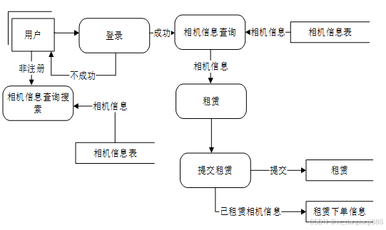 开发相机租赁系统最主要的一个目的就是实现用户对相机的租赁,图3-1就是系统的数据流图。