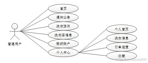 图2-1 校园洗衣店管理系统普通用户角色用例图