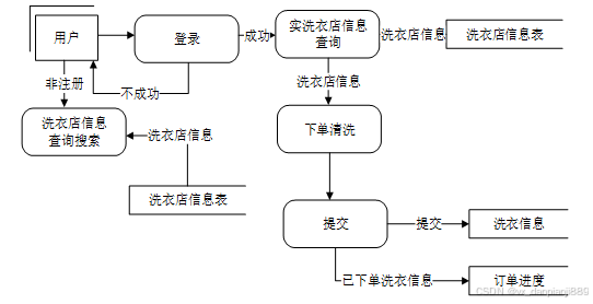 开发校园洗衣店管理系统最主要的一个目的就是实现用户对洗衣店的下单清洗,图2-4就是系统的数据流图。