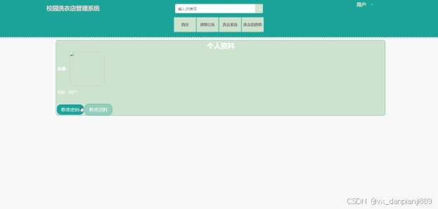 前台用户点击右上角“个人中心”模块,可以查看和管理个人相关的信息和任务,普通用户个人中心包括商家用户包括个人首页、洗衣信息、订单进度、收藏等信息的管理;商家用户个人中心包括个人首页、洗衣店信息、洗衣信息、订单进度和收藏的信息。