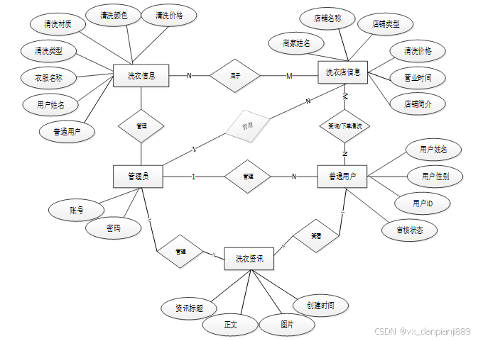 下面是整个校园洗衣店管理系统中主要的数据库表总E-R实体关系图。