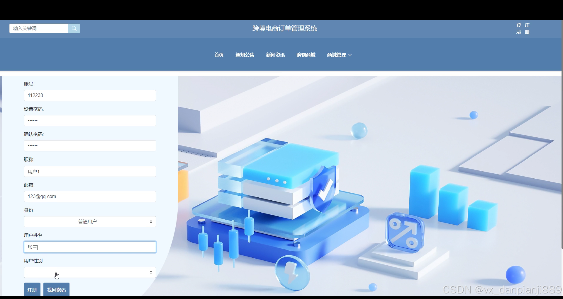 Keywords: Cross border e-commerce order management system; Java language; SpringBoot framework; MySQL database.