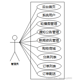 跨境电商订单管理系统中管理员用例图如图2.2所示: