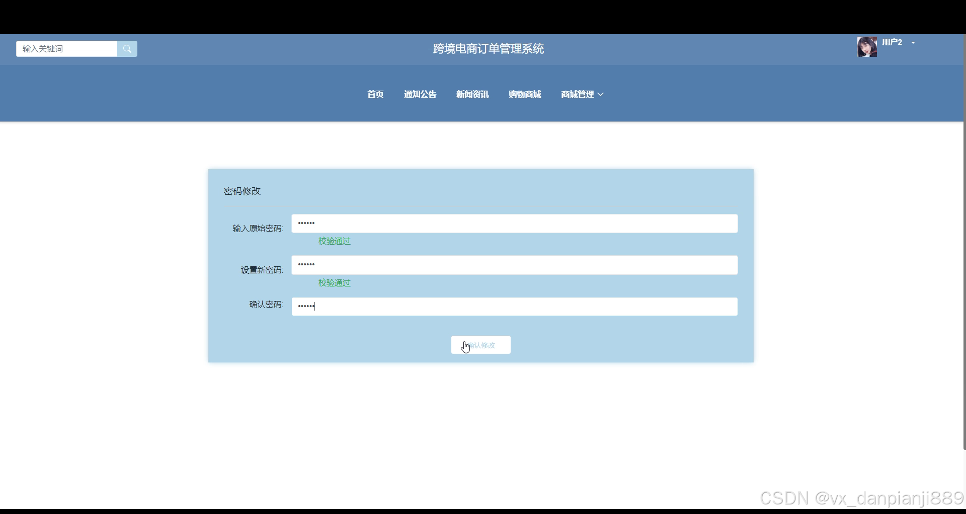 - 个人中心:展示用户个人信息和账户管理功能,如修改密码、修改个人资料等。