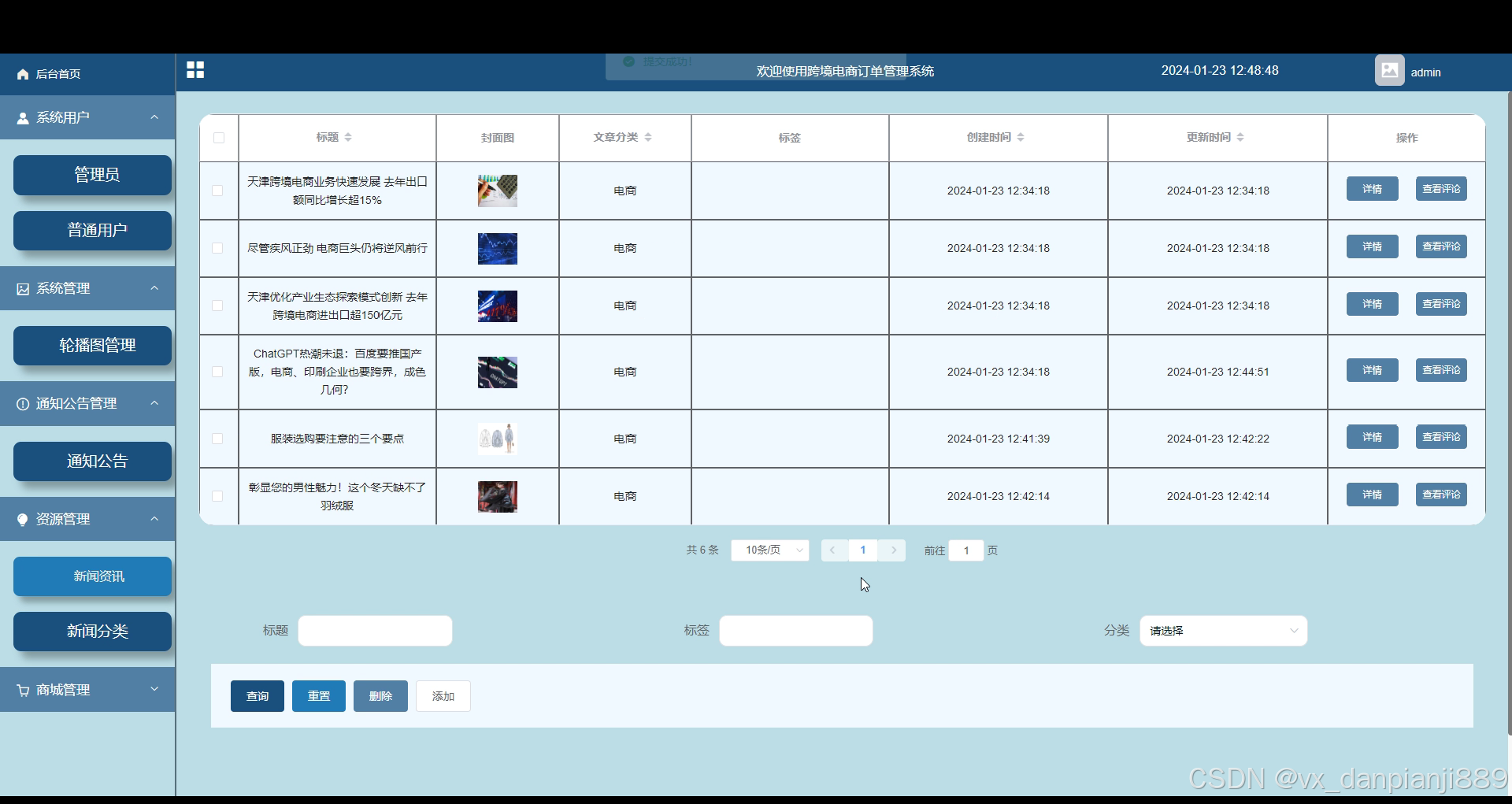 新闻资讯管理:发布和编辑关于商品的新闻和资讯,丰富网站内容,提升用户体验。界面如下图所示。