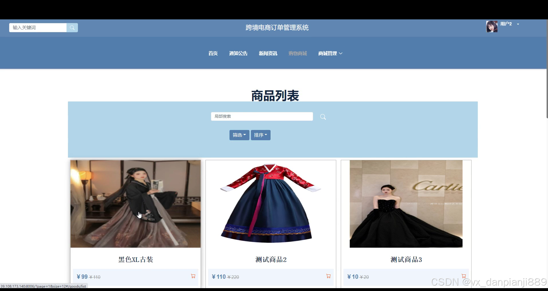 - 购物商城:用户可以在商城中浏览商品,进行搜索、筛选,并添加到购物车中准备购买。