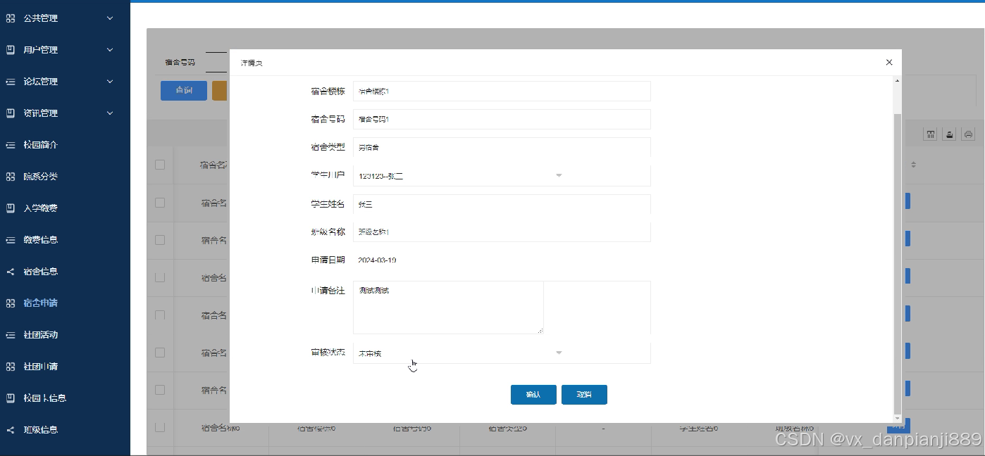 - 宿舍申请:管理员可以管理学生的宿舍申请流程,包括审核申请、分配宿舍、处理申请结果等操作,确保宿舍分配的公平和合理。