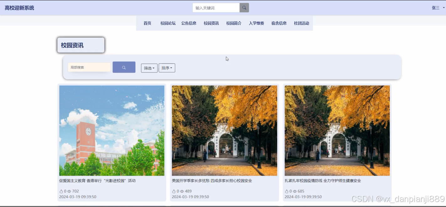 提供学校相关的新闻、活动等信息,帮助新生了解学校的发展和文化。界面如下图所示。