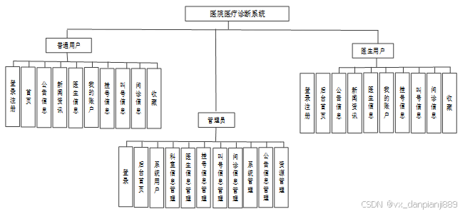 医院医疗诊断系统我划分为医生用户、普通用户、管理员这三大部分。